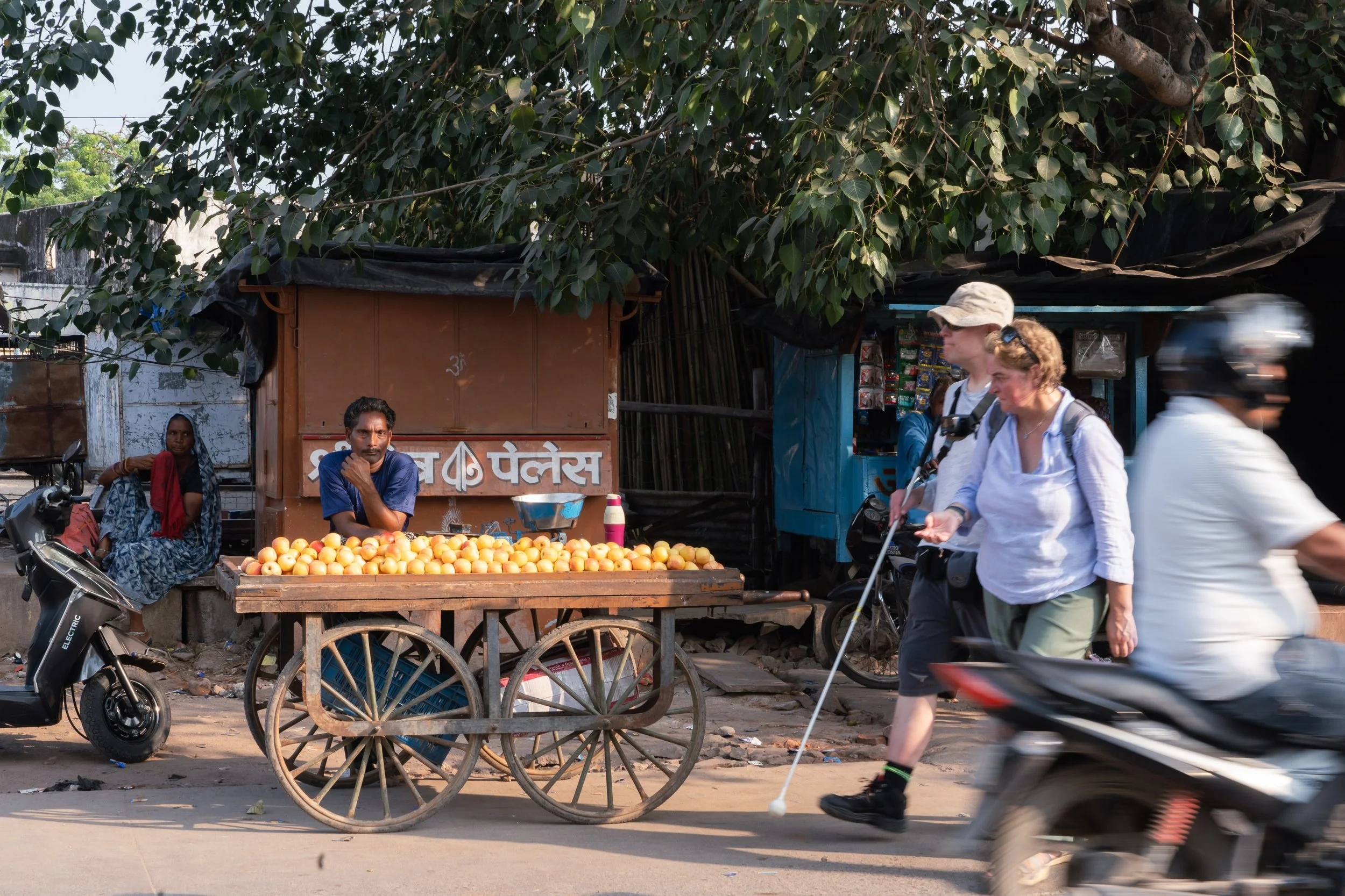 Strolling in pairs through the tight, noisy streets of Old Delhi, our group of 18 made for a curious sight. It struck me how rare it is to see so many visually impaired travelers moving together — especially in a place that feels overwhelming even for the sighted. We navigated uneven pavement, wove around men carting guavas and sacks of cement.