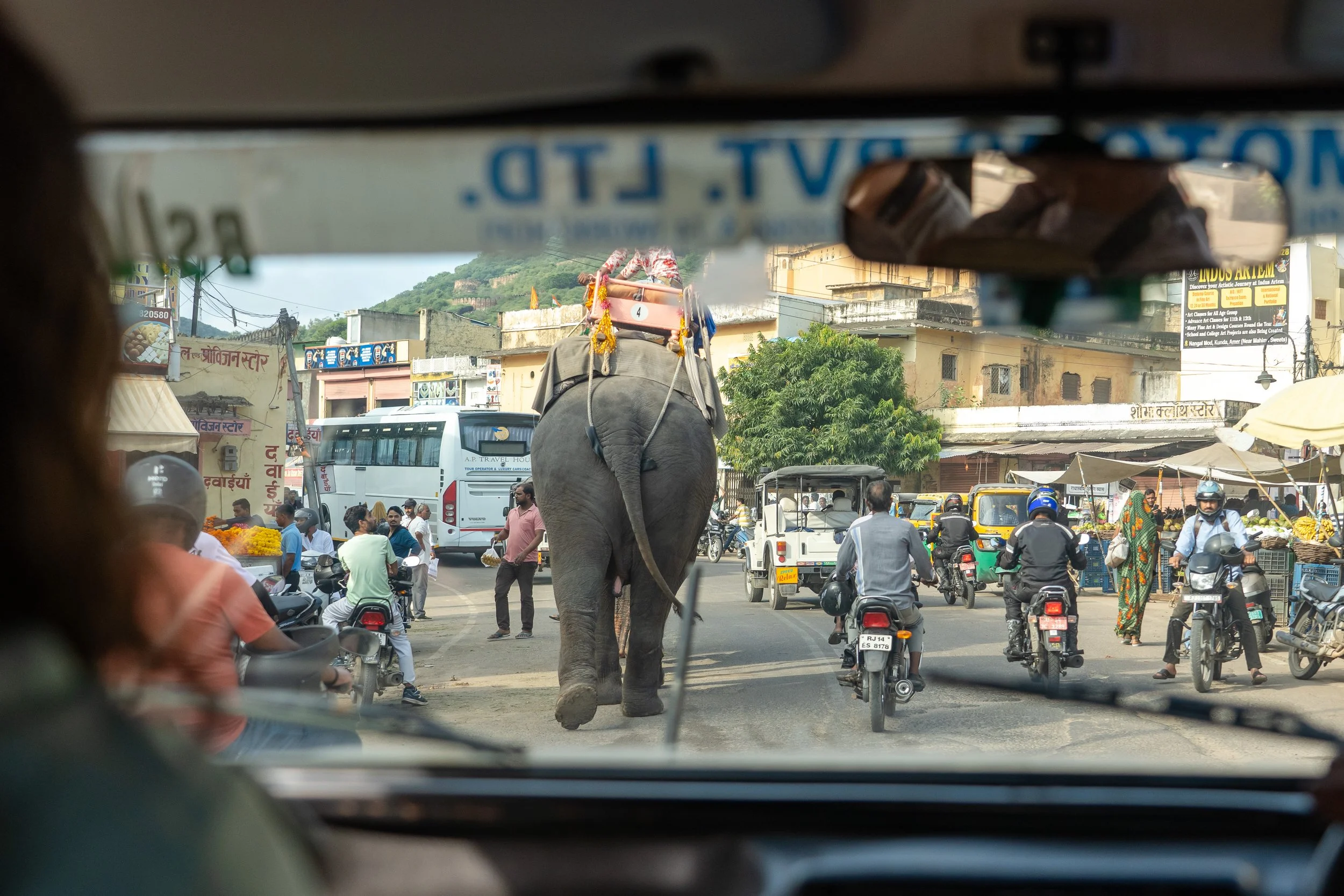 ON THE LAST DAY OF OUT TOUR, in Jaipur, we visited a jewelry workshop and the Amber Palace, a hilltop fort of mirrored halls and ancient ramparts. Later, we stopped at a community-run elephant park, the kind of modest place where you can feed bananas to the animals.